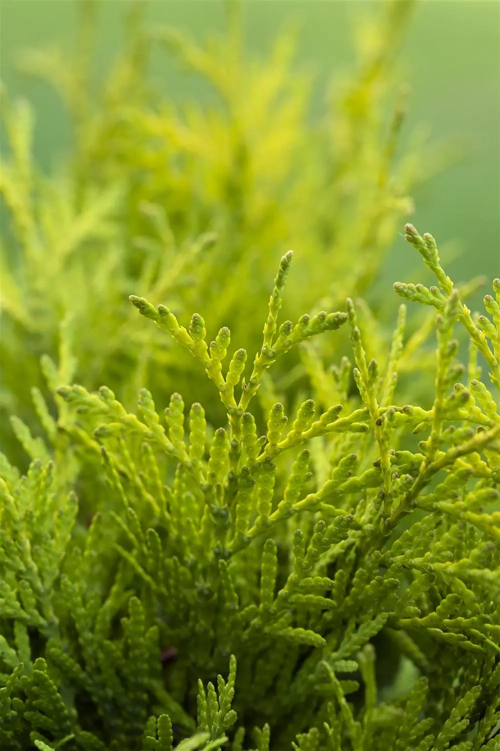White cedar 'Golden Globe' is a small shrub that grows conical and spherical. It usually reaches a height of 0.6 - 1.5 m and is approx. 0.6 - 1.5 m wide. Slow-growing.