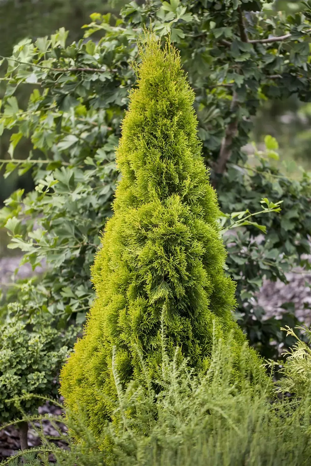 The White cedar 'Golden Smaragd'® has good frost hardiness.