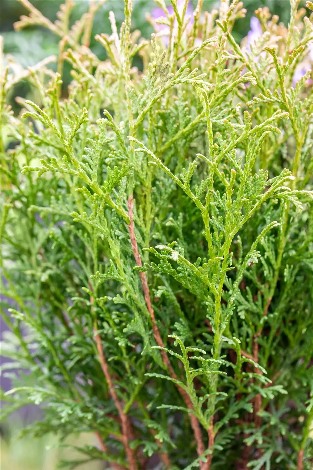 White cedar 'Tiny Tim' is a dense, spherical small shrub with an opaque crown. It usually reaches a height of 0.6 - 1 m and is approx. 1 - 1.5 m wide. Slow growing. Usually grows 3 - 4 cm per year.
