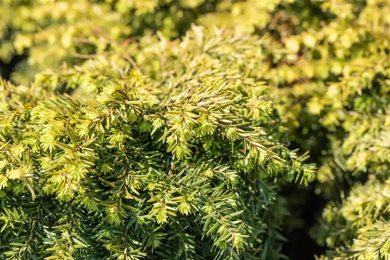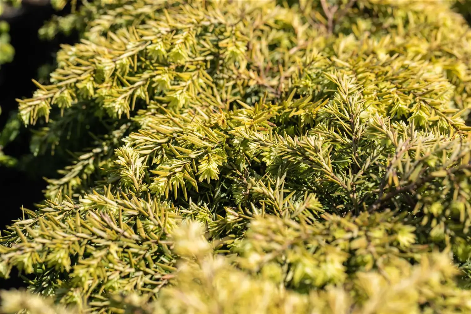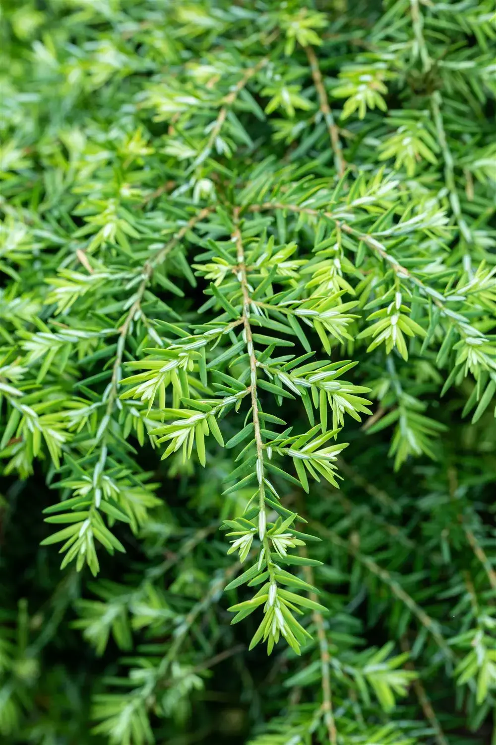 The shoots of Tsuga canadensis 'Jeddeloh' are brown-yellow in colour.