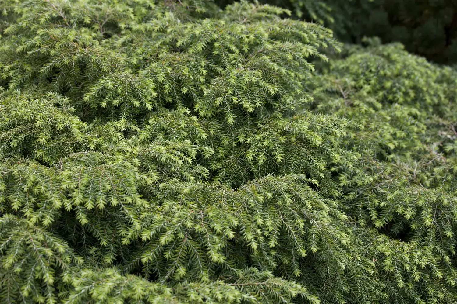 Eastern hemlock 'Jeddeloh' is a broad, pyramidal and cushion-shaped growing tree. It usually reaches a height of 40 - 50 cm and is approx. 40 - 50 cm wide. As a rule, it grows 20 - 30 cm per year.