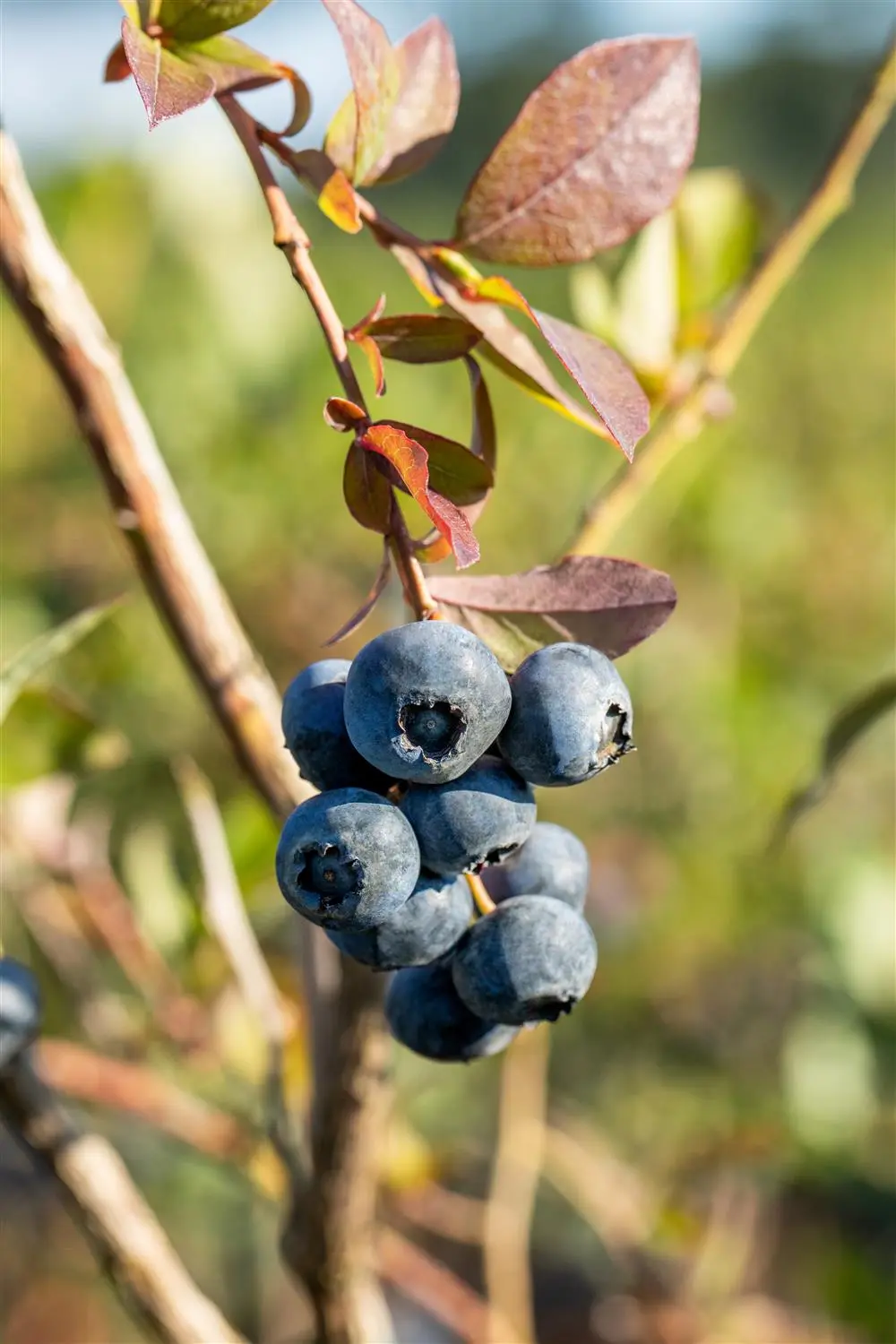 The Swamp blueberry 'Bluecrop' (Vaccinium corymbosum) produces dark blue, very large berries. They are firm and have a sweet and sour flavour. Humus-rich, sandy, slightly acidic soil and a sunny to semi-shady location create the ideal conditions for a high-yielding harvest from the end of July. Its light pink flowers are a beautiful sight. With its bushy, broad and shrub-like growth, Swamp blueberry 'Bluecrop' grows to around 1.2 metres high and 1 metre wide, making it ideal for growing in pots on balconies or terraces.