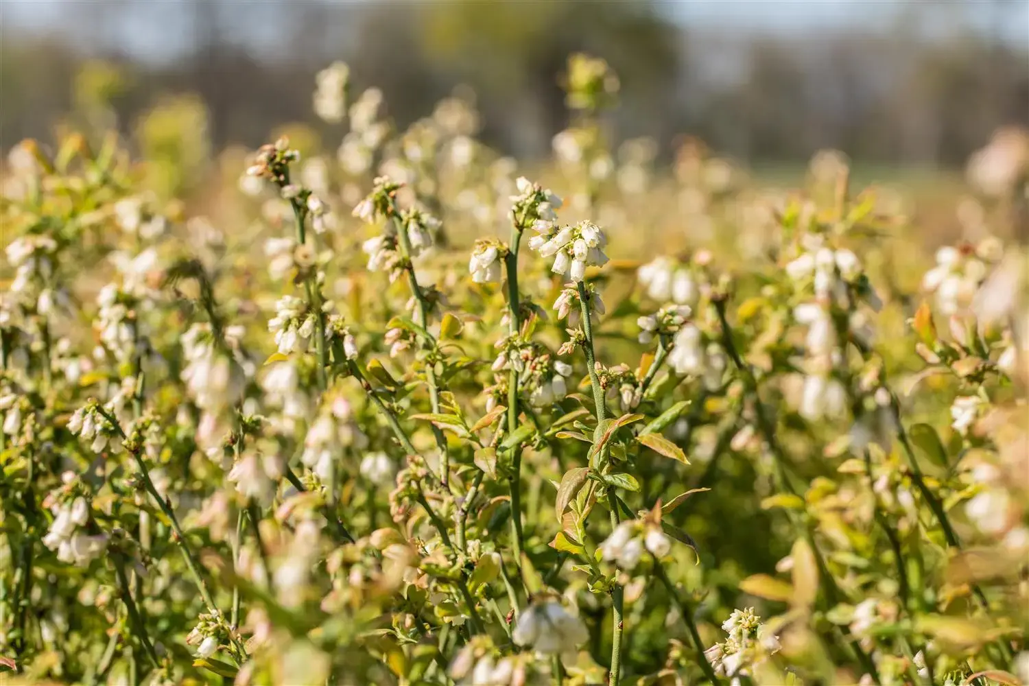 The Swamp blueberry 'Hortblue Petite'® (Vaccinium corymbosum) produces large, blue berries. They have a sweet and sour flavour. Humus-rich, sandy, slightly acidic soil and a sunny to semi-shady location create ideal conditions for a high-yielding harvest from June. Its light pink flowers are a beautiful sight. With its bushy and broad growth, the Swamp blueberry 'Hortblue Petite'® grows to around 2 metres high and 2 metres wide, making it ideal for growing in pots on balconies or terraces.