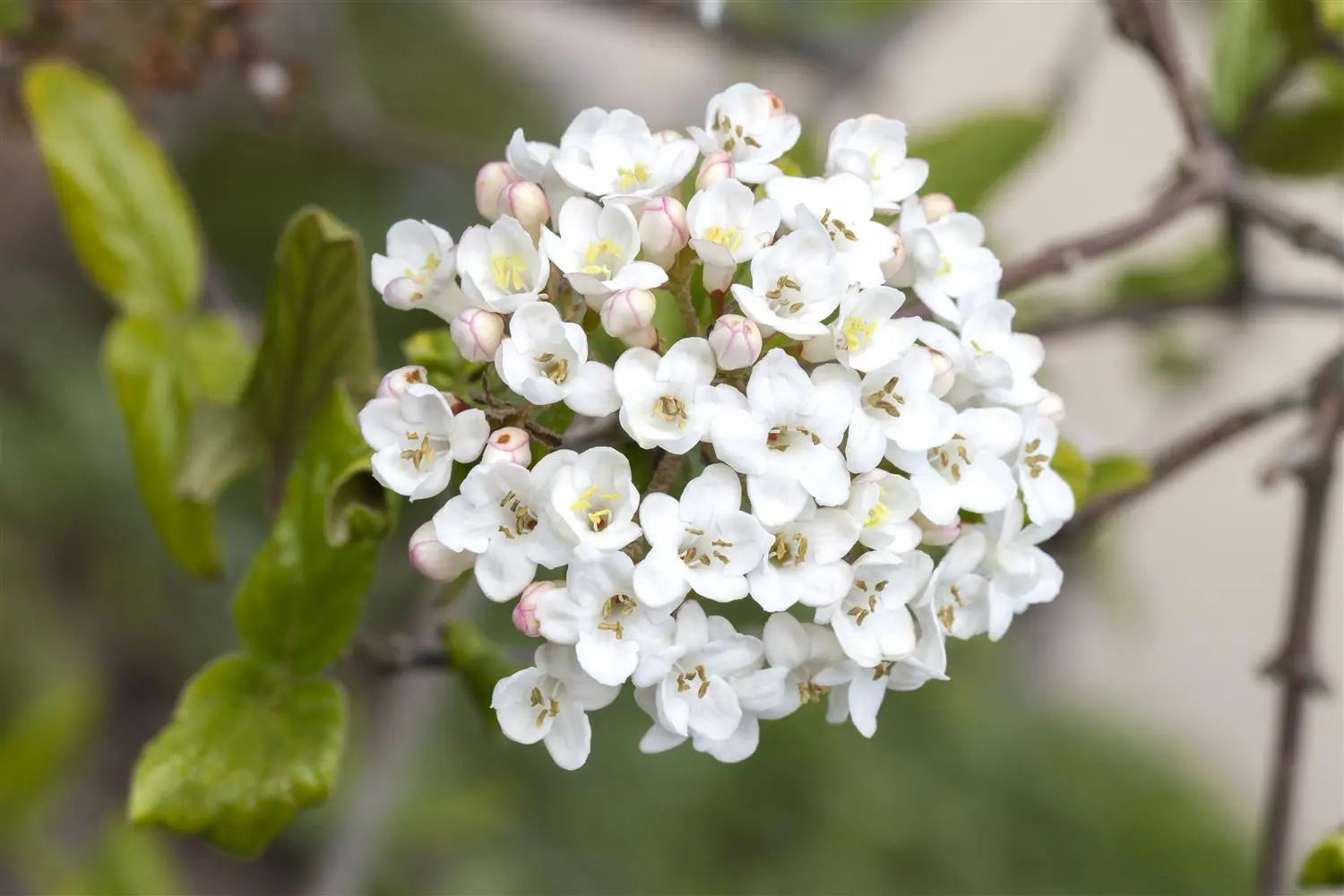 The white flowers of Burkwood viburnum appear in umbels from April to May. These are strongly scented. With the right care, re-flowering in December.