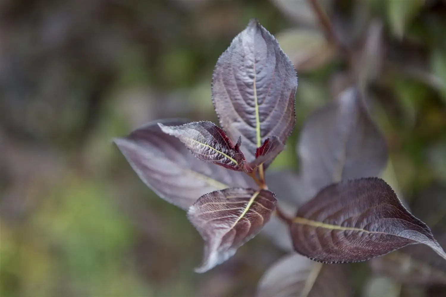 High leaf ornamental value. The deciduous leaves of the Weigela 'Purpurea' are green-red, lanceolate, opposite. They are about 6 - 10 cm tall. Bronze-coloured shoots. Weigela 'Purpurea' turns bright red-brown in autumn. Long lasting.