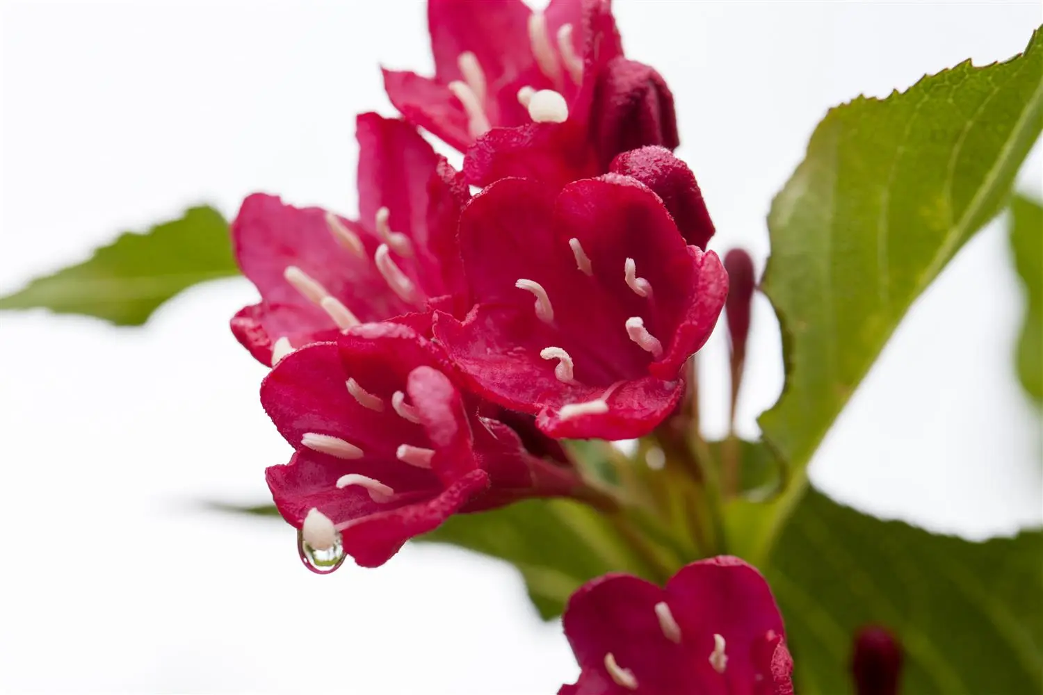 The Weigela 'Red Prince' (Weigela) is a compact small shrub that produces red, funnel-shaped flowers. They appear from May to June. With the right care, the Weigela 'Red Prince' will flower again from August to September. The Weigela 'Red Prince' also has lanceolate, medium green leaves. In a sunny to semi-shady location with well-drained, loose, nutrient-rich soil, it usually reaches a height of approx. 2 metres and grows to a width of approx. 2 metres.
