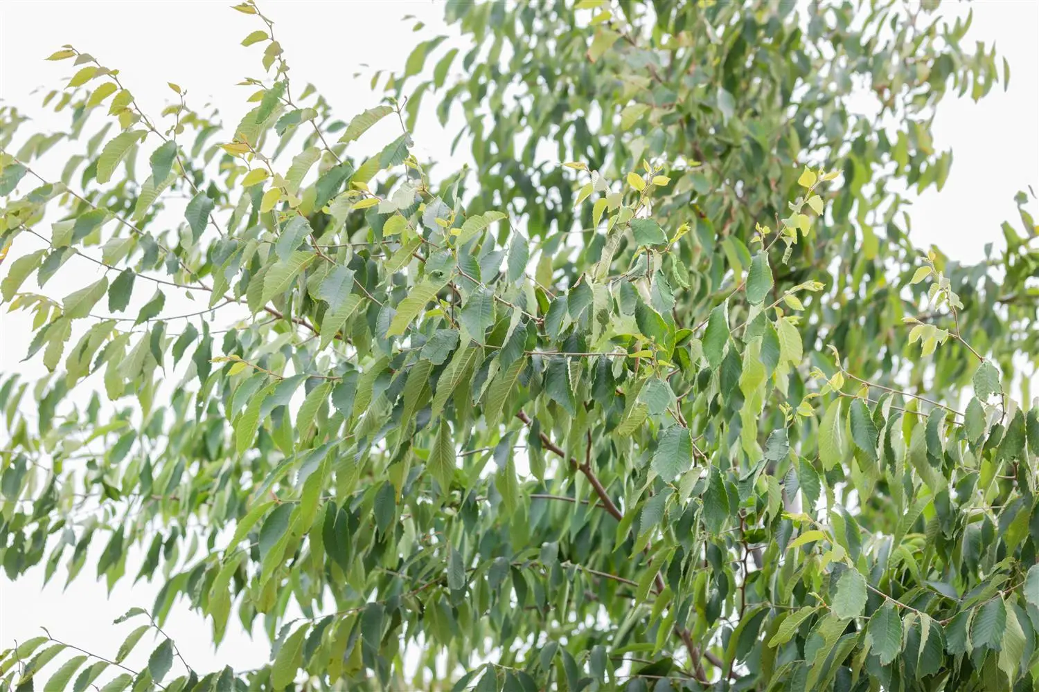 The Japanese zelkova (Zelkova serrata) is a spreading, broad, large tree that produces green-brown flowers. They appear from April to May. The Japanese zelkova also has pointed, egg-shaped, dark green leaves. Its bark is grey and scaly. In a sunny to semi-shady location with nutrient-rich soil, it usually reaches a height of around 25 metres and grows to a width of around 22 metres.